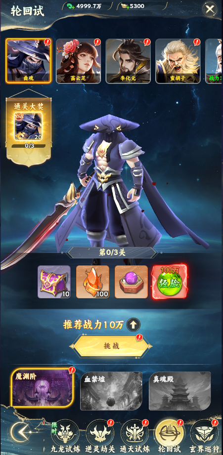 輪回試副本會根據玩家的戰力依次開啟,玩家每打一層都會獲得獎勵,第一個的試煉通關后還會獲得神將獎勵。提升玩家戰力