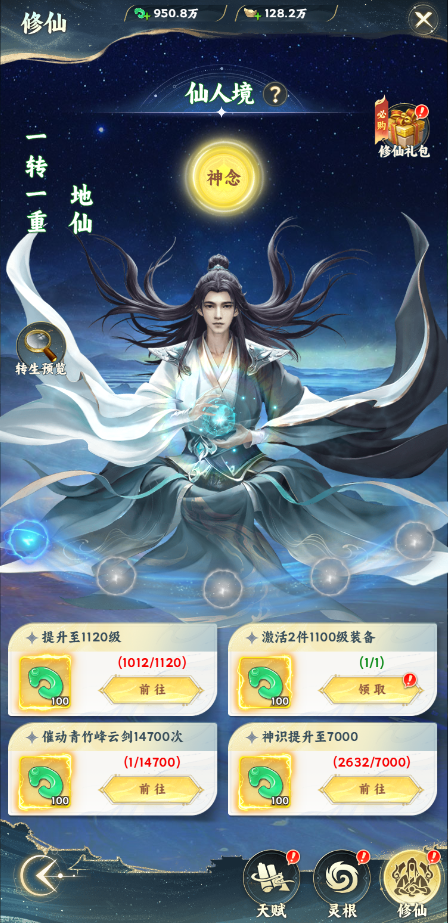 修仙2轉(zhuǎn)開啟,玩家消耗蘊(yùn)靈丹開啟靈根,開啟后消耗靈氣可以提升靈根層數(shù),當(dāng)靈根層數(shù)滿了之后可以使用蘊(yùn)靈丹突破