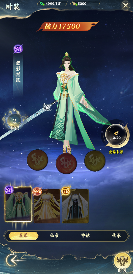 通關(guān)主線11關(guān)開啟時(shí)裝系統(tǒng),玩家可以通過激活時(shí)裝來提升戰(zhàn)力的同時(shí)改變角色穿戴的衣服。時(shí)裝還可以通過升星和吞丹來提升屬性。