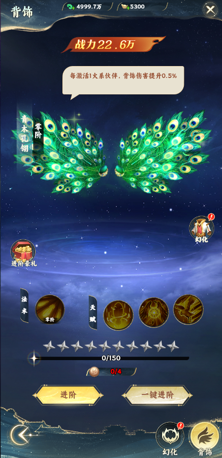 修仙1轉(zhuǎn)3重開啟背飾系統(tǒng),玩家可以通過激活背飾來提升戰(zhàn)力的同時(shí)改變角色穿戴的背飾。背飾可以通過升星和吞丹來提升屬性,同時(shí)背飾還可以消耗進(jìn)階丹來進(jìn)階獲得更高的屬性。背飾1階后還會獲得主動技能,使得戰(zhàn)斗更加順暢。
