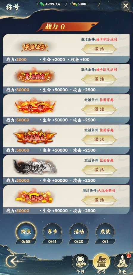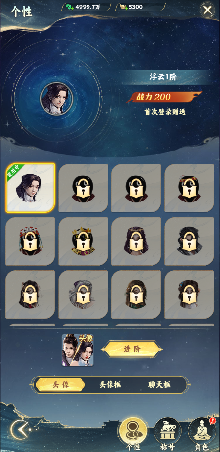 個(gè)性分為頭像,頭像框,聊天框,玩家激活后會獲得屬性,提升戰(zhàn)力,佩戴中的頭像,頭像框,聊天框可以在聊天界面中看到,主界面也能看到自己的頭像和頭像框。頭像,頭像框,聊天框可以進(jìn)階,消耗道具進(jìn)階可以獲得屬性,提升戰(zhàn)力。