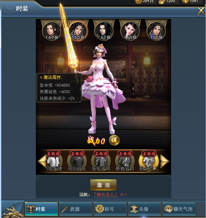 打開界面后玩家可預覽時裝的造型以及激活后附加的屬性