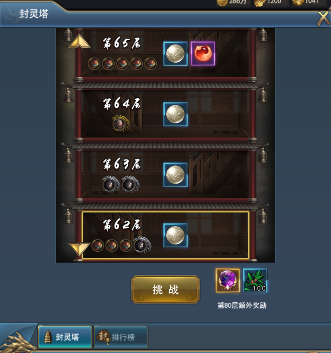 封靈塔從主城進入,爬塔式玩法,從第一層開始向后挑戰,只要通關成功就可以繼續挑戰下一關。通關獎勵可以提升角色屬性的屬性丹,以及提升“境界系統”的必備材料“封靈丹”。