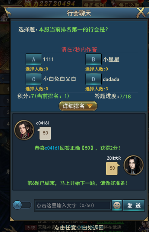 2,每場車輪戰,各行會參賽的10名玩家根據戰力依次上場。