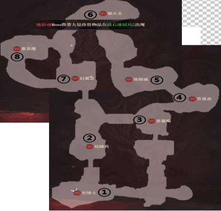 晶石冰原的Boss因為受到冰封效果,血量回復速度變慢。所以我們利用這一點,1-2-3BOSS擊殺后副本的冰封值仍有剩余,下一只我們去Boss8,但不要直接擊殺,打殘血到10%以內,再前往另一只Boss7同樣打到10%殘血以內,此時回到Boss8會發現血量僅回復到?60%左右,抓緊時間擊殺Boss8,進入30s的退出倒計時,這時候我們回到血量在40%左右的Boss7將其擊殺,利用剩下的20s的時間可以再擊殺多1個boss。