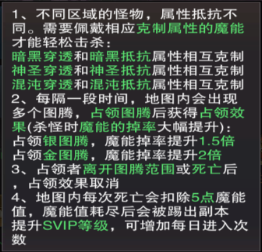 從圖中我們可以得知不同魔能裝備的克制屬性,另外該副本中含有銀圖騰與金圖騰,占有后魔能掉率會得到提升,建議條件允許的情況下,盡量占領金圖騰來擊殺怪物,獲取最大的副本收益。