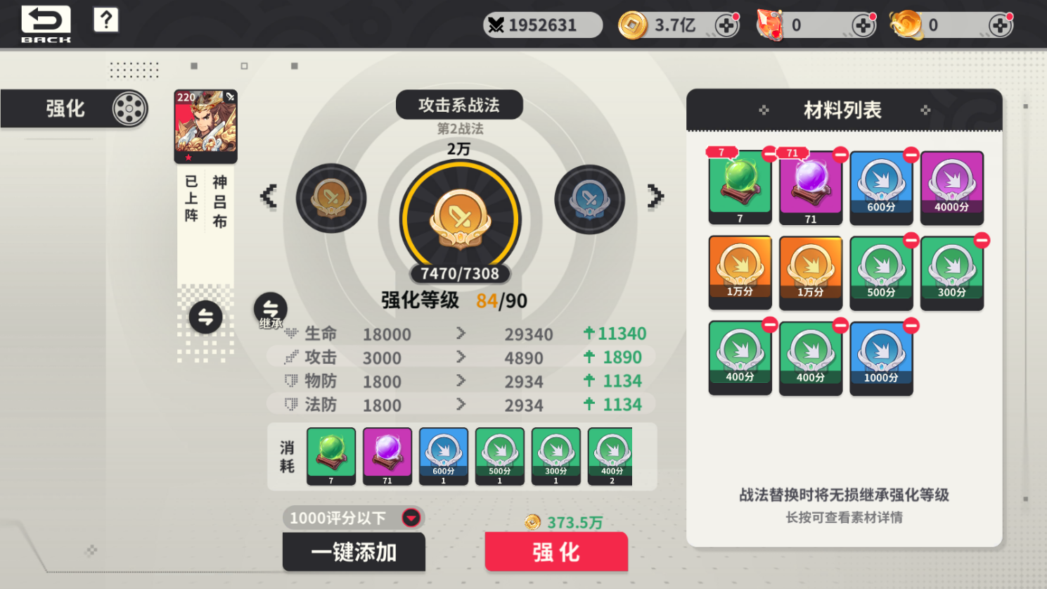 每個軍魂都可以異化,異化后,將提高基礎屬性與附加屬性。并且隨著精煉等級的提升,將額外增加武力、謀略屬性。
